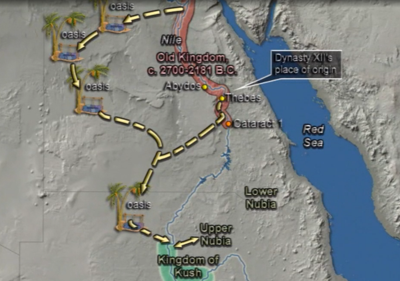 Los Nubios, un pueblo vecino al sur, que tradicionalmente habían sido empleados como mercenarios fueron eventualmente incorporados al reino de Egipto de manera relativamente pacífica ya que a cambio obtenían el beneficio de mejores infraestructuras de irrigación y tecnologías agricolas. Por el norte, hubieron campañas militares y se incrementó el flujo comercial con otros pueblos. Fue esta dinastía la XII la que crease las bases del primer imperio egipcio que se materializaría con la XVIII dinastía (1570 BC). Sin embargo, uno de los principales problemas de la d. XII era que sus faraones eran vistos como extranjeros por parte de los egipcios de Memphis y que estos promovieras varias rebeliones que acabarían en guerra civil.